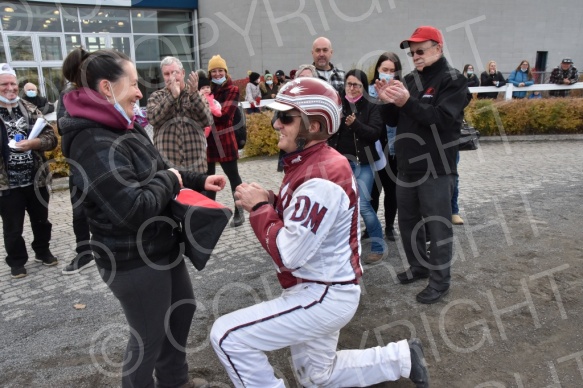 - Description: Ceremonie de retraite pour cheval Rain Gauge; Daniel Mondou; Josee Ouellette; Demande de mariage de Daniel Mondou;2021-11-07